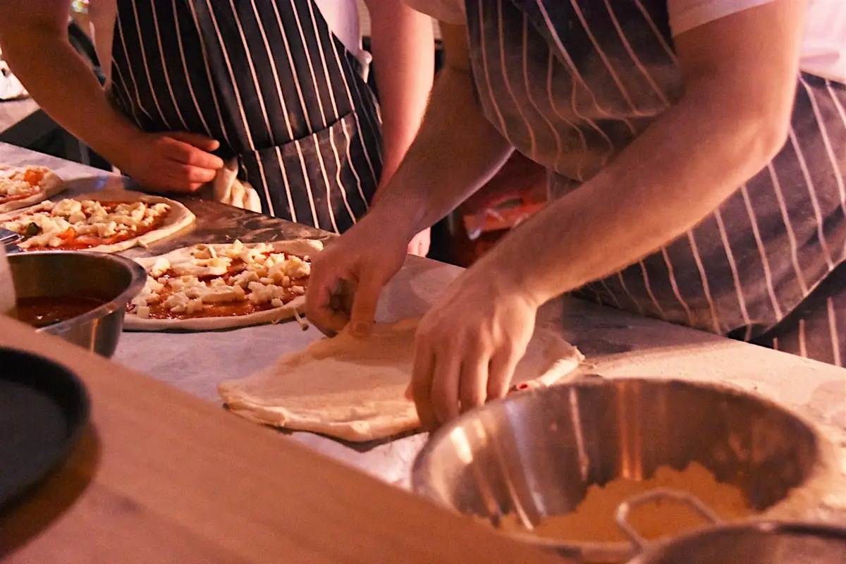 We use a hybrid flour mix of muticeriali, rye and spelt, with 1 ½ pints of Cold Town in every batch. The dough is hand stretched and shaped before being finished with delicious, traditional toppings.