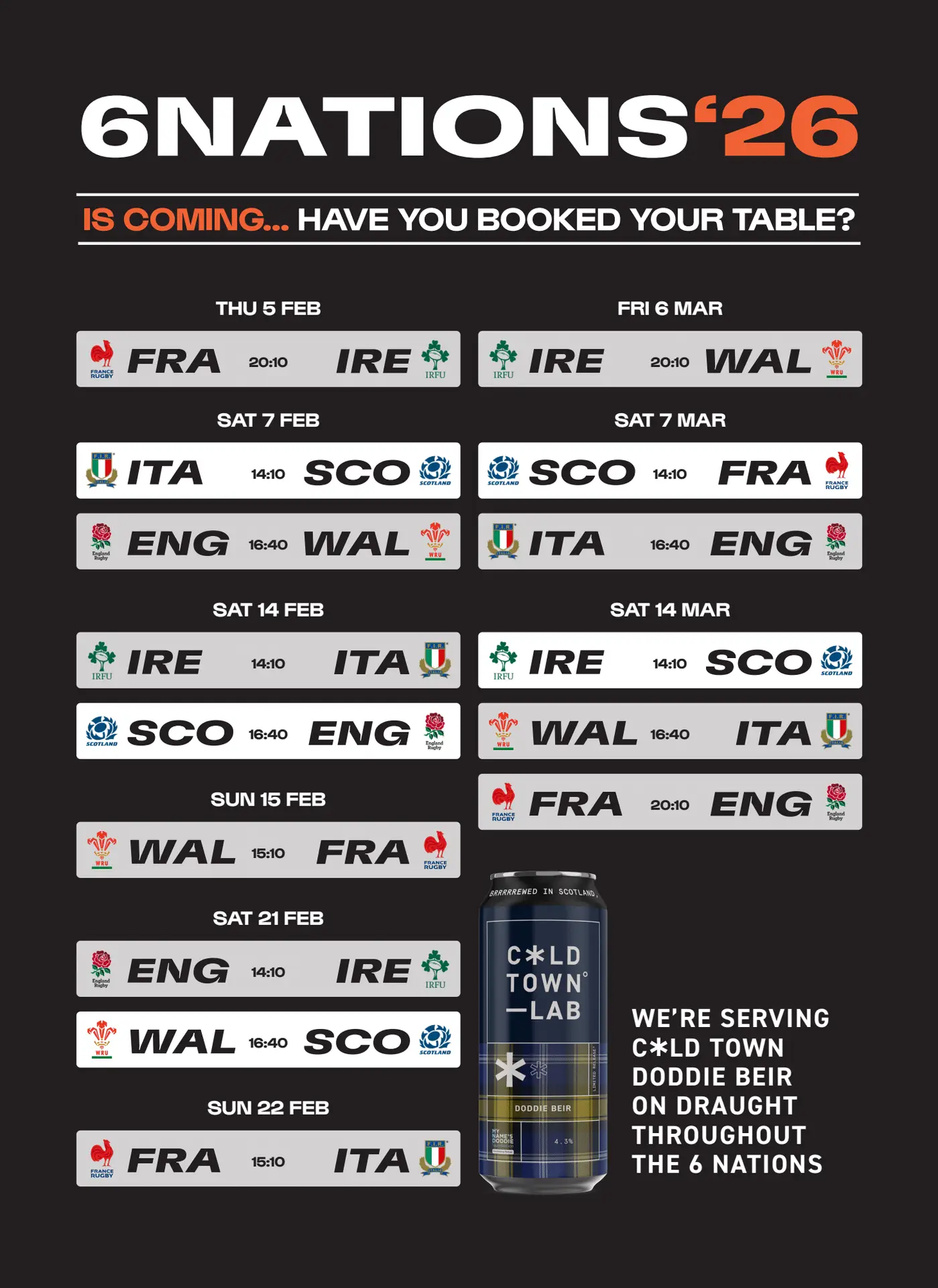 Got an away fixture? Settle in with us and enjoy all the action live, fuelled by fresh pizza, Cold Town Beer, and a buzzing match-day atmosphere. Whether you’re gathering with mates or bringing the family along, we’ve got everything you need for the Six Nations.